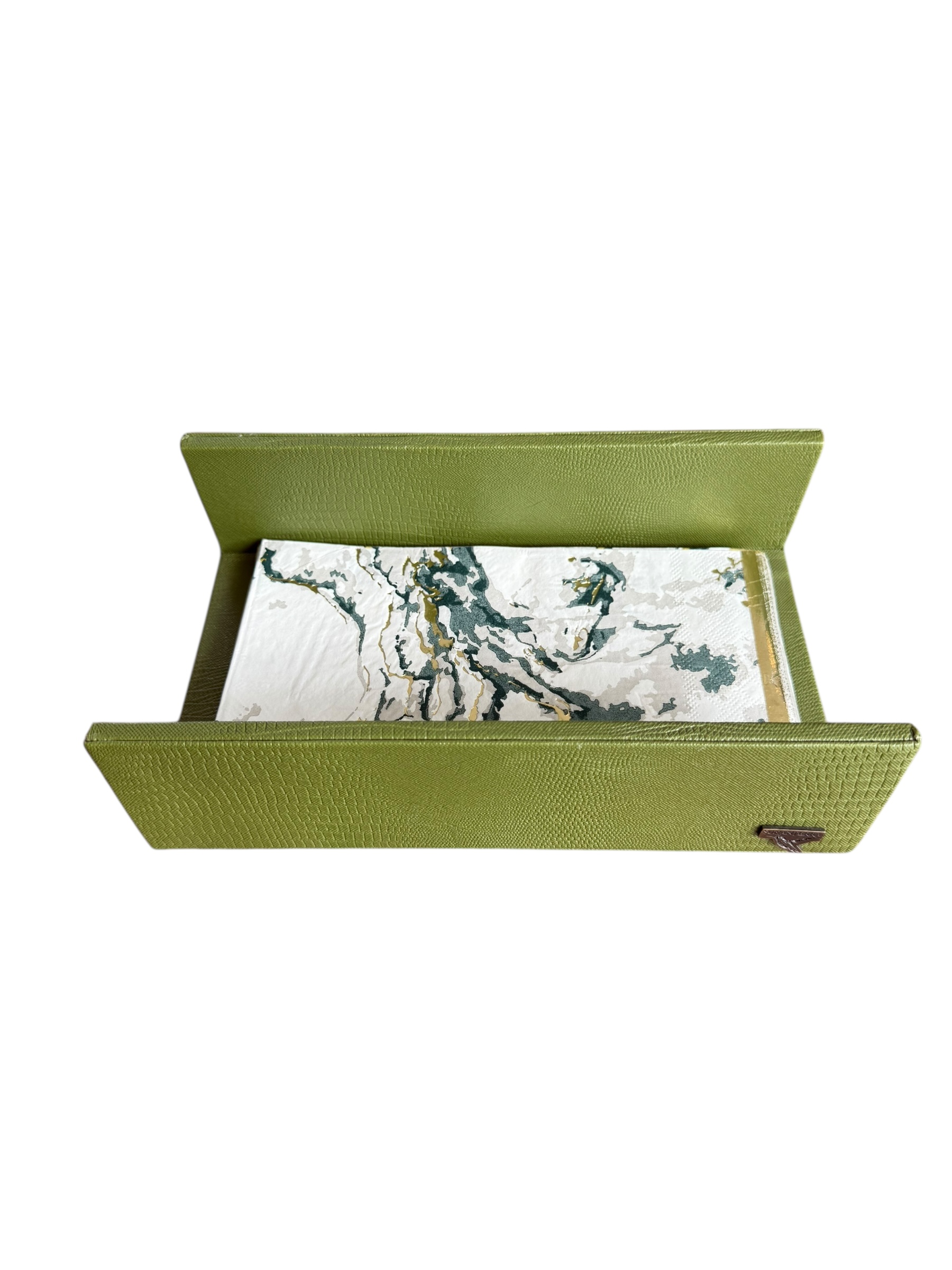 Charola-grapa para servilletas rectangulares, diseño drilo olivo