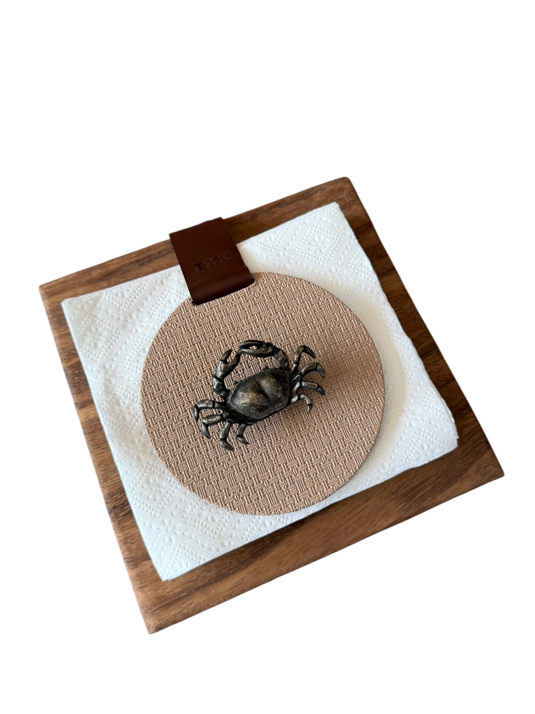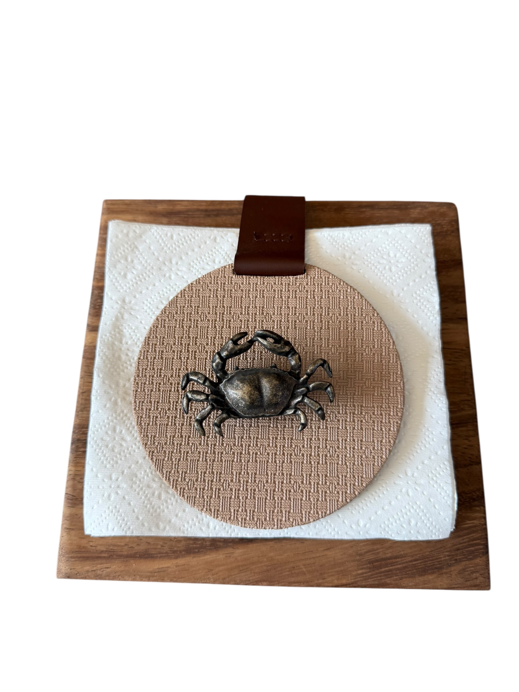 Servilletero en parota, drilo maquillaje con herraje de cangrejo