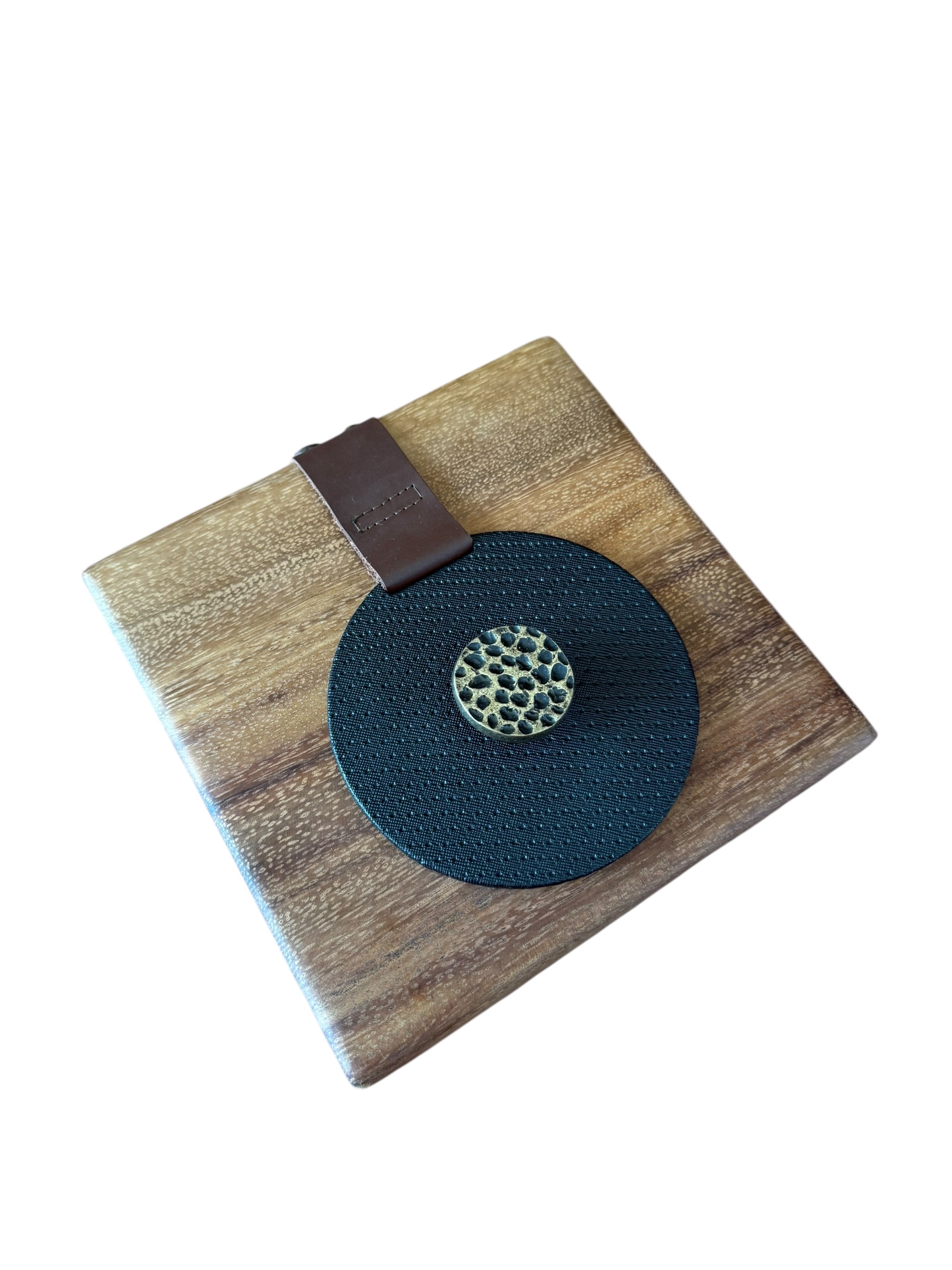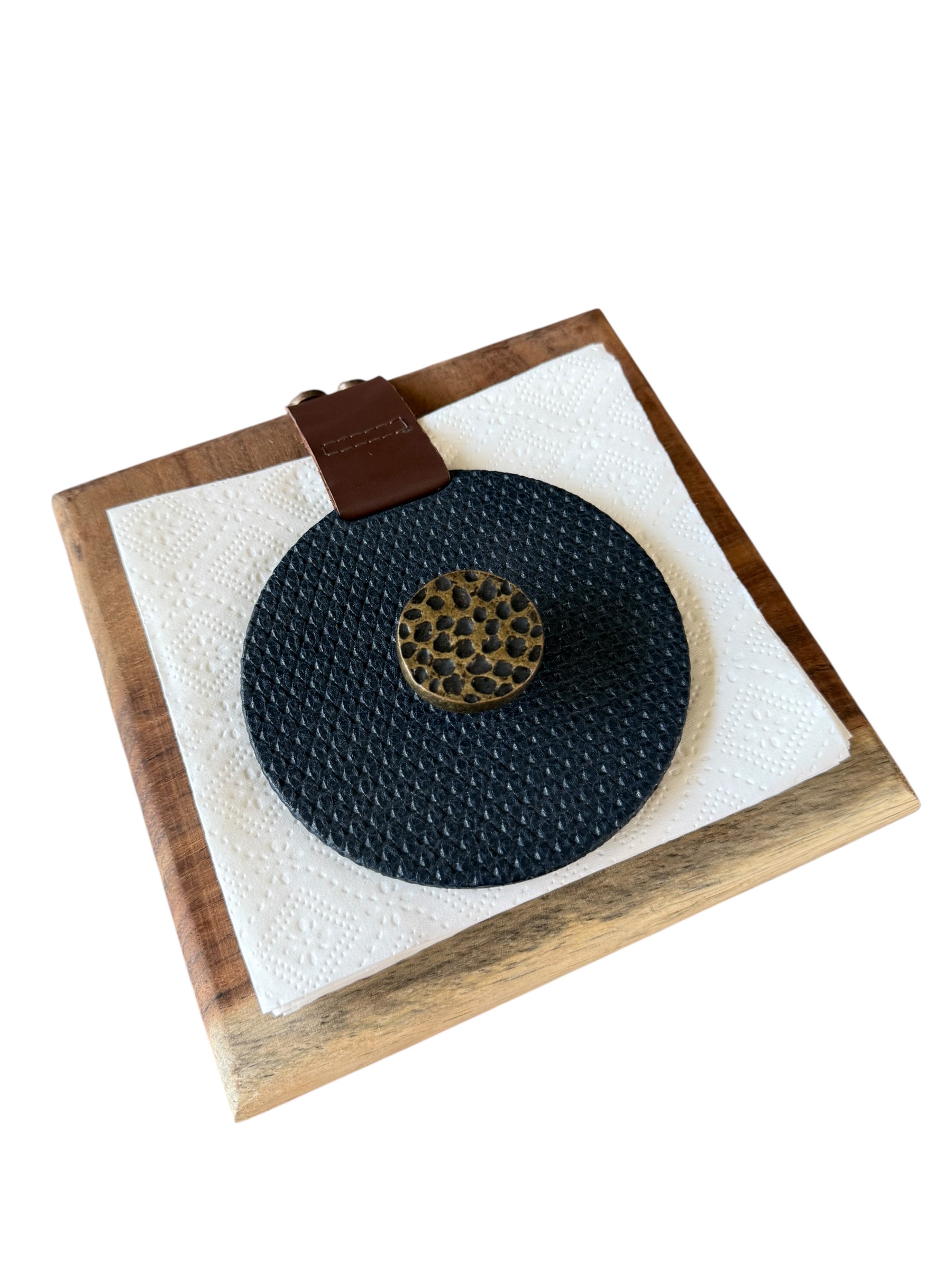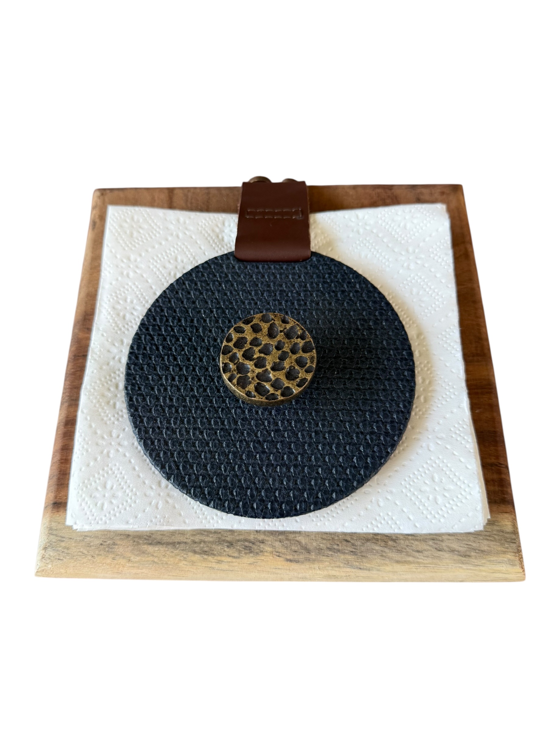 Servilletero en parota, drilo negro con herraje de nuez