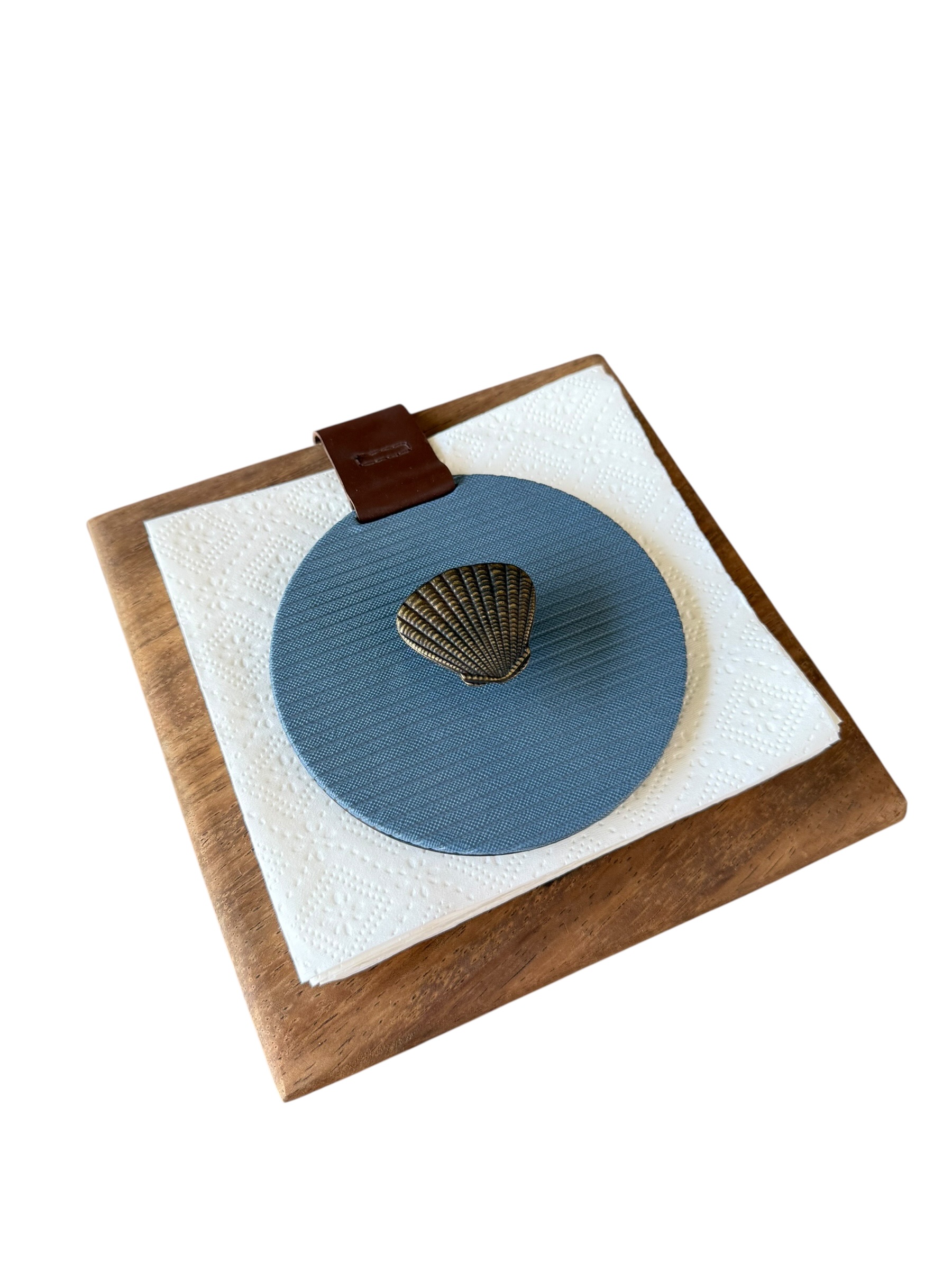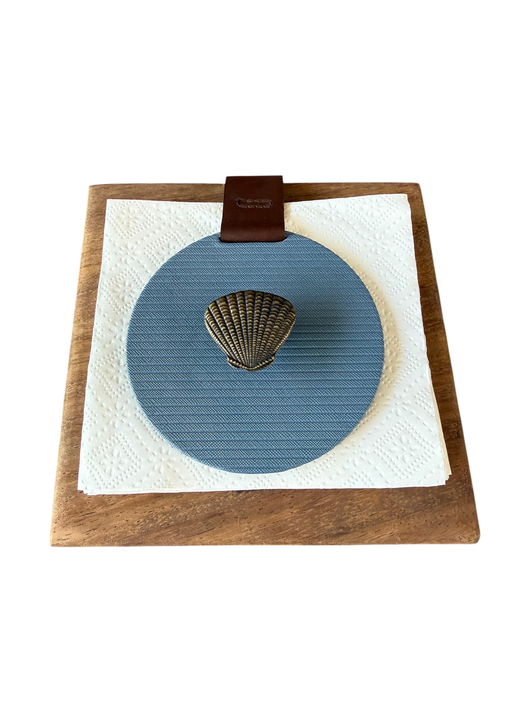 Servilletero en parota, liso azul con herraje de concha