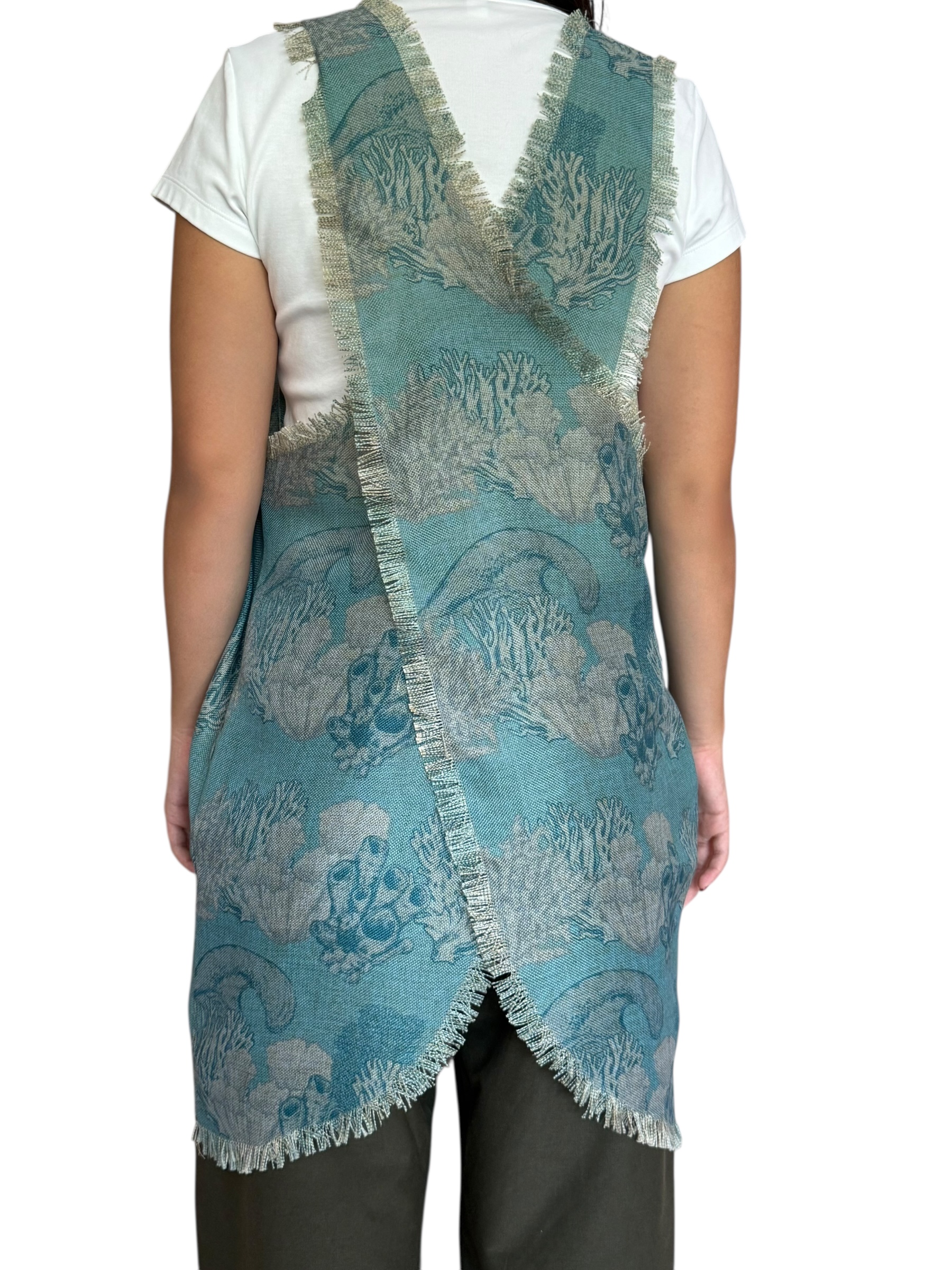 Mandil de lino, diseño coral. Esta pieza artesanal, puede presentar ligera variación en tamaño y tonalidad.
